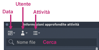 Nota: Le attività vengono registrati anche quando la tavolozza Informazioni approfondite attività è chiusa. Tutte le attività vengono visualizzate alla successiva apertura della tavolozza.