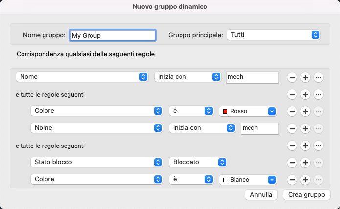 - Per eseguire il raggruppamento utilizzando regole OR logiche, fare clic su