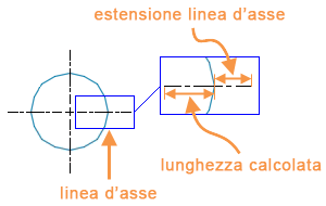 È possibile controllare la dimensione del centro e la scala e il font delle estensioni di linea d'asse. È inoltre possibile disattivare l'estensione di linea d'asse.