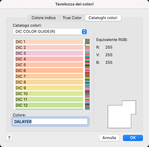 Specifica il catalogo colori da usare per la selezione dei colori.