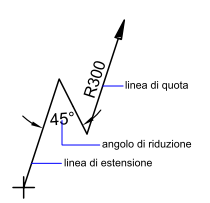 Determina l'angolo del segmento trasversale della linea di quota in una quota ridotta di raggio. (Variabile di sistema DIMJOGANG)