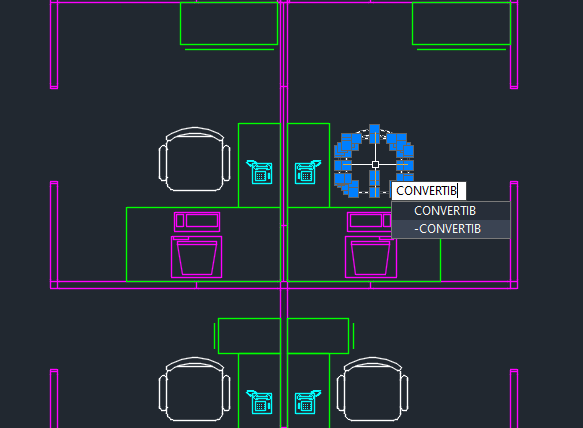 -CONVERTIB: alla riga di comando, converte in blocchi le entità selezionate e le istanze identiche.