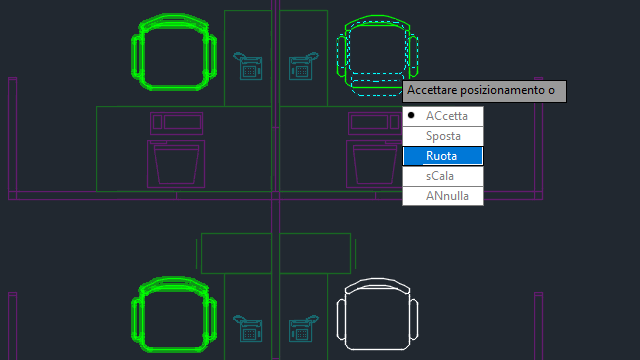 Quando si seleziona una geometria per la conversione, in AutoCAD vengono trovate ed evidenziate tutte le istanze della stessa geometria. È quindi possibile scegliere di convertire in un blocco la geometria selezionata e le istanze trovate.