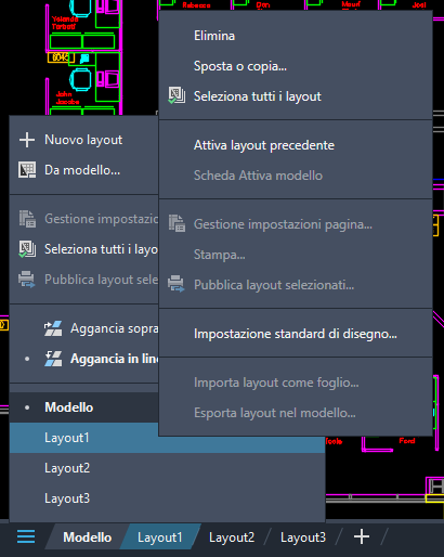 Fare clic con il pulsante destro del mouse sul nome di un layout per visualizzare altre opzioni.
