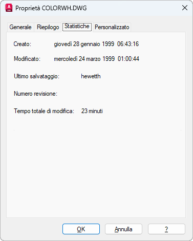 Queste proprietà del file sono utili per cercare disegni creati o modificati durante un determinato periodo di tempo.