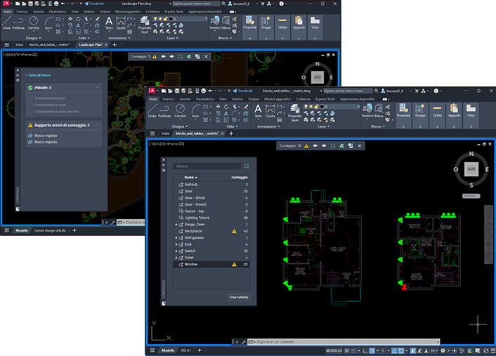 - Conteggiare le istanze di tutti i blocchi. Utilizzare la tavolozza Conteggio per visualizzare e gestire tutti i blocchi conteggiati nel disegno corrente.