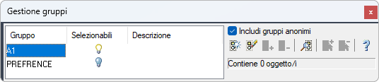 Se un gruppo non è selezionabile, la lampadina apparirà disattivata e sarà possibile selezionare solo i singoli membri del gruppo. Se la variabile di sistema PICKSTYLE è impostata su 0, nessun gruppo risulterà selezionabile.