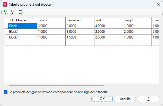 Definisce le diverse varianti di un gruppo di proprietà definite dall'utente nella definizione di blocco tramite un controllo della griglia.