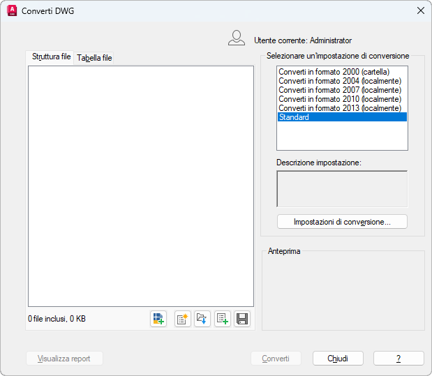 Finestra di dialogo Converti DWG