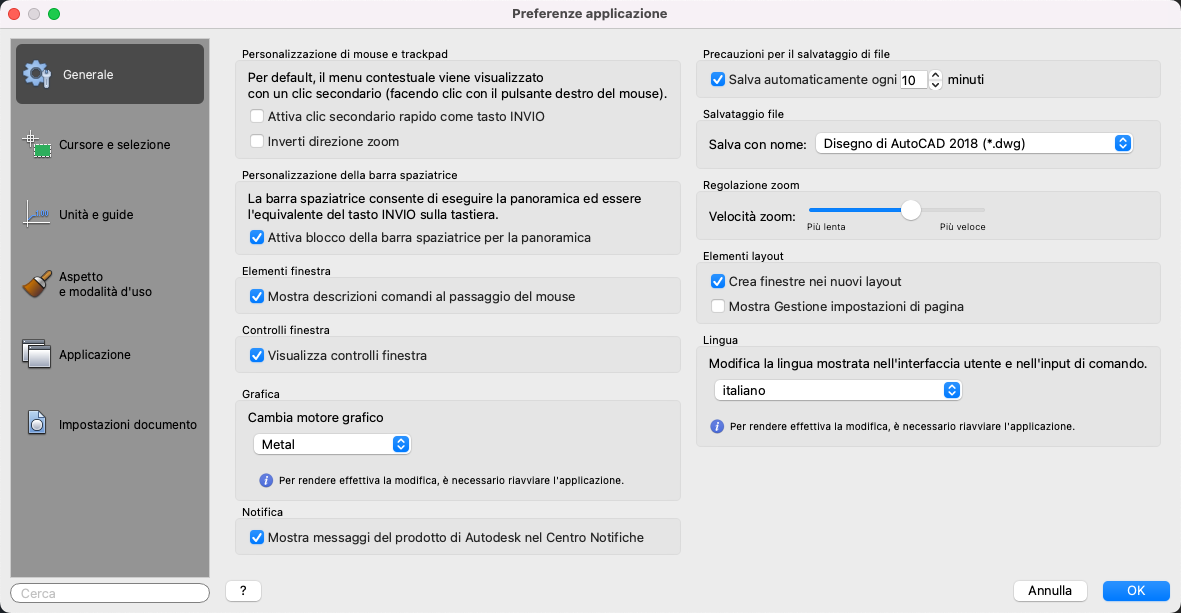 Minuti tra due salvataggi: specifica la frequenza di salvataggio del disegno quando è attivato il salvataggio automatico. (Variabile di sistema SAVETIME)