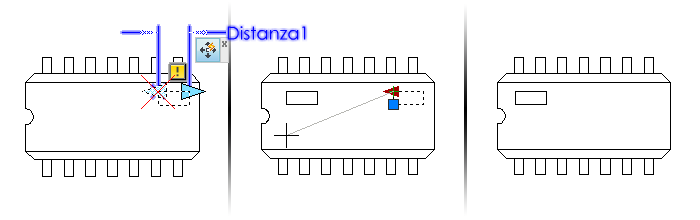 Un'azione di spostamento associata ad un parametro punto consente di spostare tutti gli oggetti di un gruppo di selezione in qualsiasi direzione. Il parametro punto è la posizione del grip che consente di eseguire l'azione di spostamento nel riferimento di blocco.