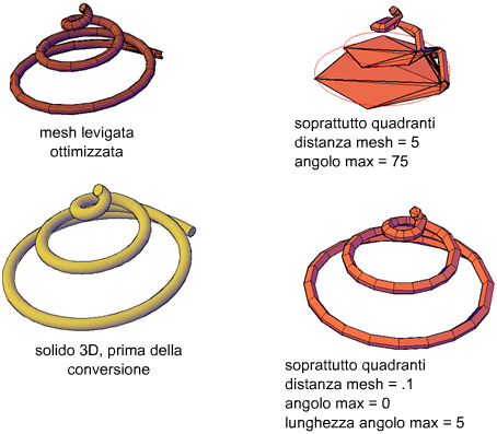 È possibile convertire solidi, superfici e tipi di mesh esistenti in oggetti mesh.