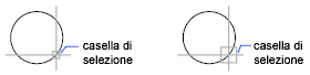 APERTURA controlla la casella di selezione degli snap ad oggetto e non quella visualizzata con il messaggio di richiesta Selezionare oggetti. Il riquadro di selezione degli oggetti è controllato dalla variabile di sistema PICKBOX.