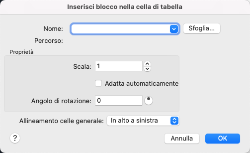Nel visor Cella tabella, fare clic su Inserisci blocco.