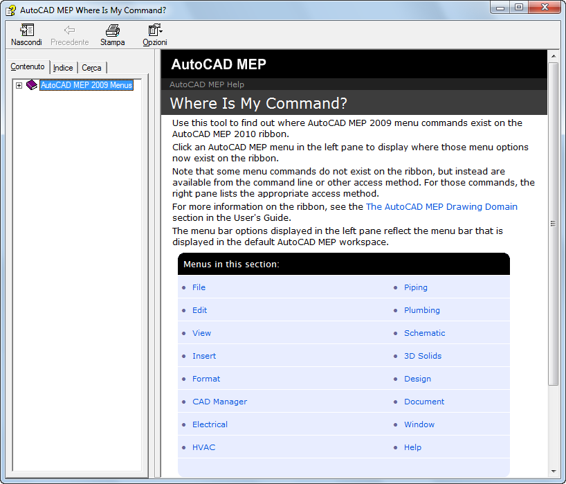 Lo strumento Guida alla ricerca dei comandi è una Guida in cui sono indicate le precedenti posizioni di tutti i comandi nei menu e le posizioni correnti nella barra multifunzione.