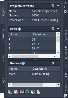 La tavolozza Navigatore progetto rappresenta la posizione centrale per la creazione, la modifica e l'accesso ai file di progetto di AutoCAD MEP 2025 toolset. Di norma, questa tavolozza viene tenuta aperta nell'area di lavoro durante l'elaborazione di un progetto. Per ulteriori informazioni, vedere .