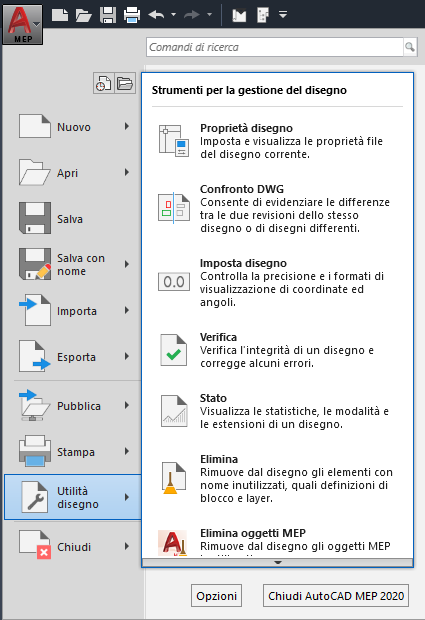 - Uscita da AutoCAD MEP 2025 toolset