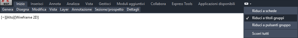 Per visualizzare la barra multifunzione nel caso non sia visibile nell'area di lavoro o sia stata disattivata, immettere barramultif nella riga di comando.
