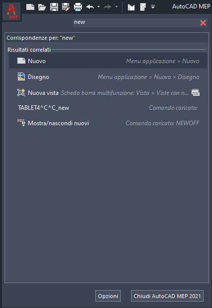 Nel menu dell'applicazione è possibile eseguire la ricerca di un comando e quindi selezionarlo dall'elenco dei risultati restituiti. I risultati della ricerca vengono recuperati dalle posizioni seguenti:
