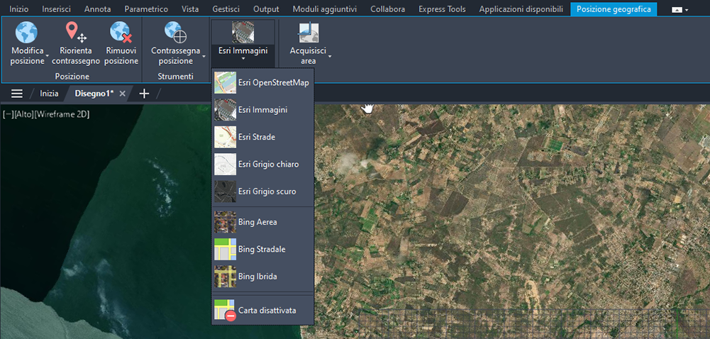 Ora è possibile utilizzare cinque tipi aggiuntivi di mappe di Esri per assegnare informazioni sulla posizione geografica ad un file di disegno.