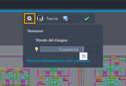 Quando si visualizzano revisioni importate, è possibile modificare la trasparenza dello sfondo per regolare la visibilità della revisione importata.