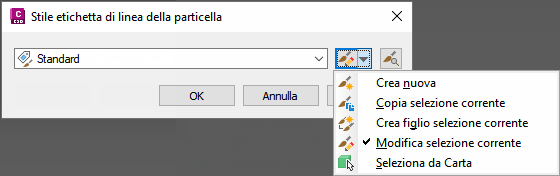 Figura 12: finestra di dialogo per l'accesso agli strumenti di modifica degli stili etichetta