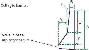 Se Includi barriere è impostato su vero, ai bordi dell'impalcato sinistro e destro verranno aggiunte sezioni della barriera New Jersey. Le pendenze della parte inferiore della barriera sono variabili in modo da corrispondere alle pendenze dell'impalcato.