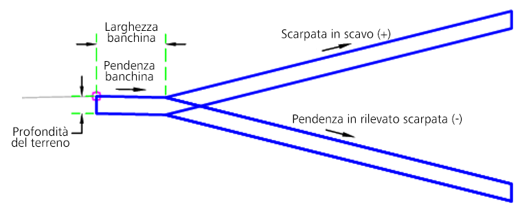 Il punto di associazione si trova nel bordo interno della pendenza iniziale in scavo o in rilevato. Questo componente può essere collegato al lato sinistro o destro.
