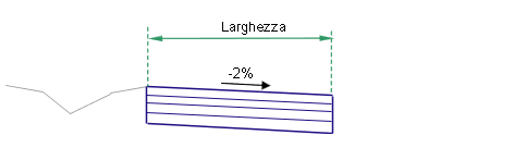 In modalità layout questo componente sezione tipo visualizza i collegamenti della corsia utilizzando la larghezza e lo spessore specificati ad una pendenza di -2%.