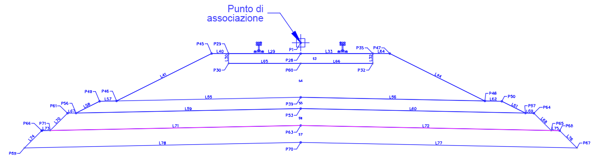 Dovrebbe essere seguito dal componente sezione tipo Scarpata a sinistra e a destra, per chiudere il terreno esistente in condizioni di scavo e rilevato. È in grado di gestire la sopraelevazione ferroviaria.