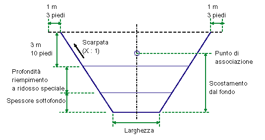 Il punto di associazione si trova alla distanza di Scostamento dal fondo sopra il punto medio della base della trincea.