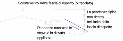 La pendenza tipica della scarpata fa sì che il punto di aggancio rientri nel limite di scostamento specificato dal valore numerico o dalla posizione del tracciato.