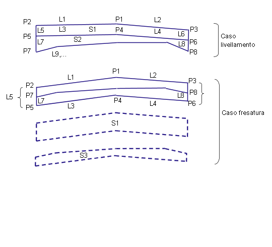 Collegamenti di ricoprimento. Si noti che L5, L6 vanno dal fondo alla sommità del ricoprimento in entrambi i casi di Fresatura e Livellatura. |