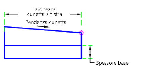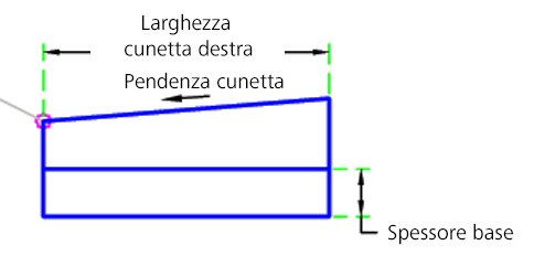 | Spessore base | Spessore della base sotto la cunetta | Numerico, positivo |