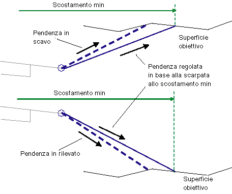 Se necessario, la pendenza viene regolata per mantenere il punto di fine scarpata oltre uno scostamento minimo dalla linea base.