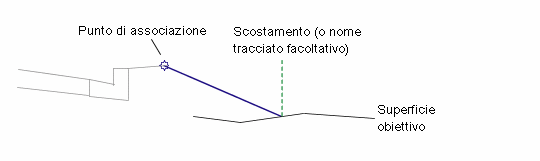 Può essere utilizzato per sostituire il valore fisso Scostamento e collegare la fine del collegamento ad un tracciato di scostamento È possibile utilizzare i seguenti tipi di oggetto come obiettivi per la specificazione dell'offset: tracciati, polilinee, linee caratteristiche o figure di rilievo. |