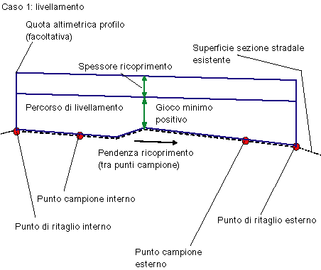La pendenza della superficie esistente viene determinata tra i punti campione interni ed esterni. La pendenza di ricoprimento viene determinata in base ai seguenti passaggi: