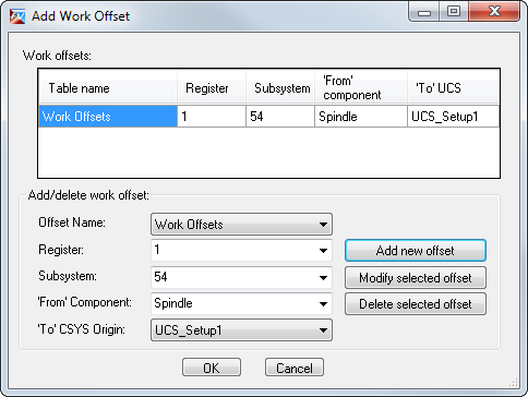 Usare la finestra di dialogo Aggiungi offset di lavoro per specificare gli offset codice G di lavoro VERICUT, che determina dove sono i punti di contatto del codice G.