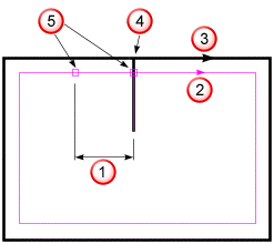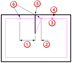 Un comando di stop è inserito nel percorso elettroerosione insieme ad uno stop ulteriore alla fine del contorno. La distanza della nuova posizione di stop dal punto finale del contorno è definita nel campo Punto stop. Se si vuole tagliare la posizione finale del contorno, si può anche definire la Sovrapposizione. Nella simulazione centrolinea, le posizione in cui l'elettroerosione si ferma vengono mostrate come piccoli quadrati.