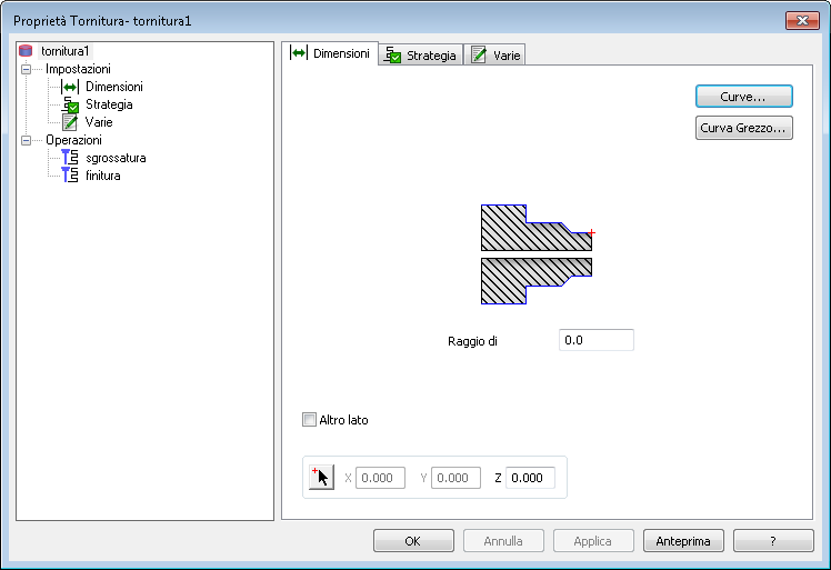 Usare la scheda Dimensioni per modificare le dimensioni della feature di Tornitura.