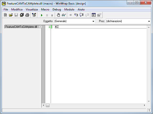 FeatureCAM include un Ambiente di sviluppo integrato (IDE) che è possibile usare per modificare i programmi BASIC. Usare questa finestra di dialogo per visualizzare, modificare e scrivere subroutine, funzioni, macro e moduli aggiuntivi.