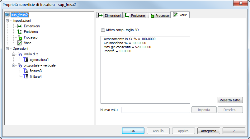 Attiva compensazione taglio 3D — Vedere la scheda Strategia per maggiori informazioni sulla compensazione di taglio.