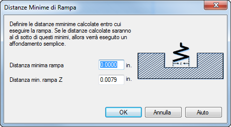 Si può usare la finestra di dialogo Distanze Minime di Rampa per specificare la distanza minima rampa Z, sotto la quale avviene l'affondamento.