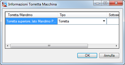 - Per ciascun elemento nell'elenco Torretta/Mandrino: