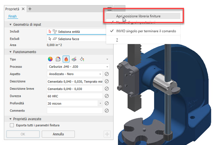 Per ulteriori informazioni, vedere Come assegnare una finitura ad un componente.