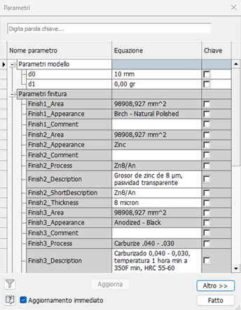 I parametri di finitura si trovano all'interno della cartella Parametri > Parametri di finitura.