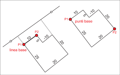 Se è attiva la modalità punto, viene richiesto di selezionare il punto base. Viene quindi aperta la finestra di dialogo ed è possibile continuare con un punto o una sezione misurata.