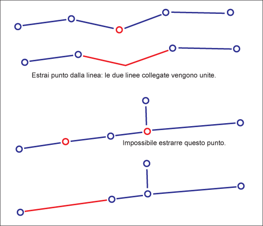 Il punto viene eliminato dal database e le linee precedentemente collegate da tale punto vengono unite.