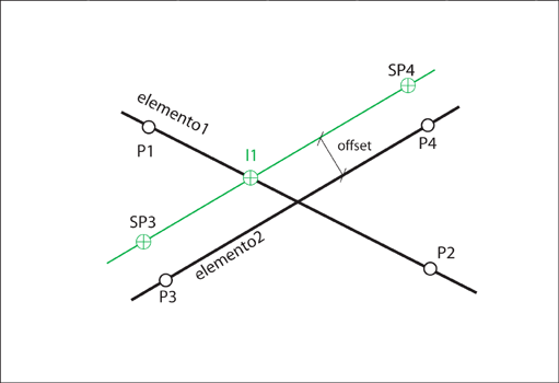 Utilizzare la funzione di intersezione per calcolare l'intersezione di due elementi (linee rette o archi circolari) o per collegare due elementi mediante una tangente o un cerchio (tangente).