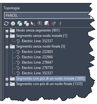 Nella finestra di dialogo Controllo topologia dell'area vengono elencati tutti gli errori di topologia in Esplora entità geografiche.